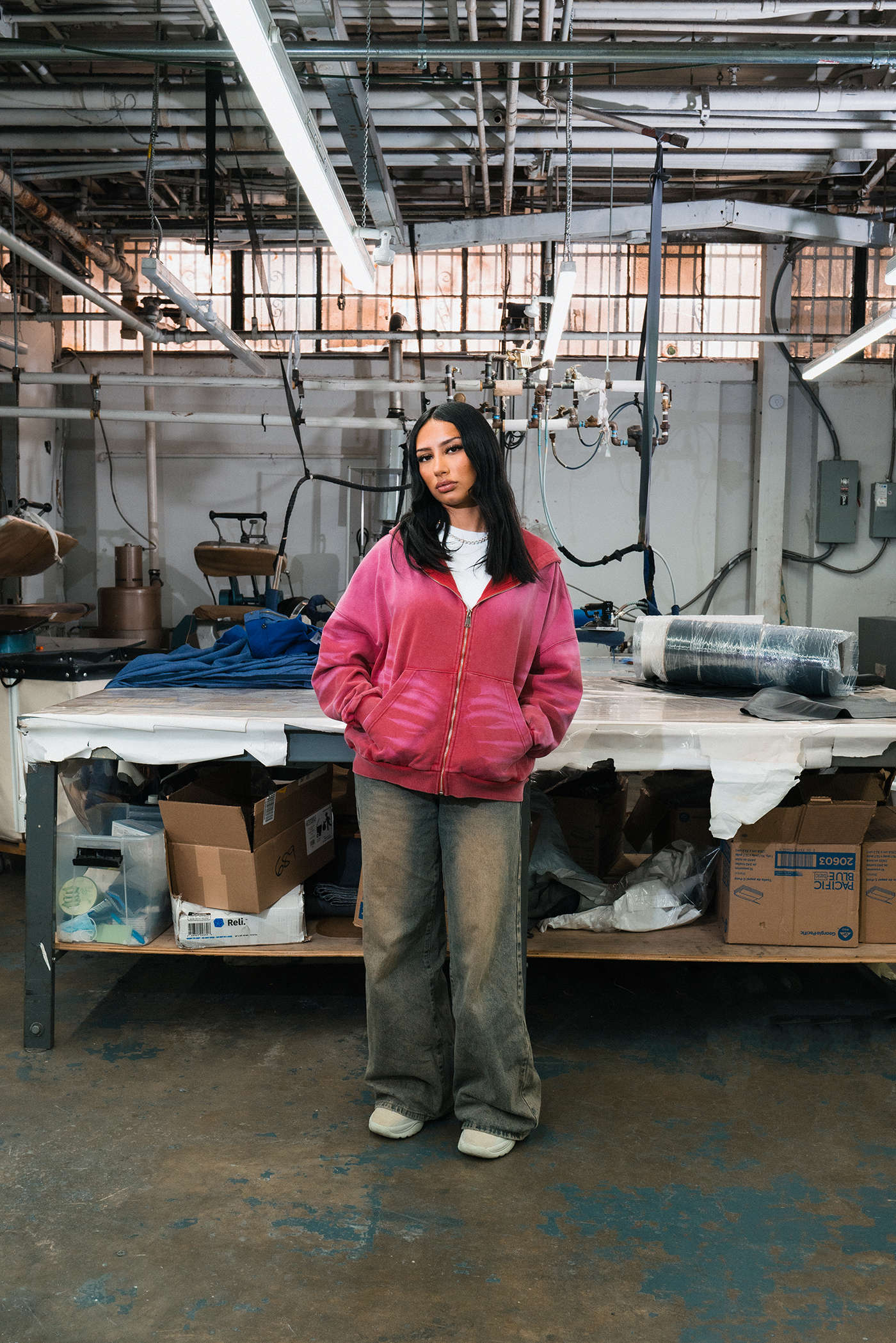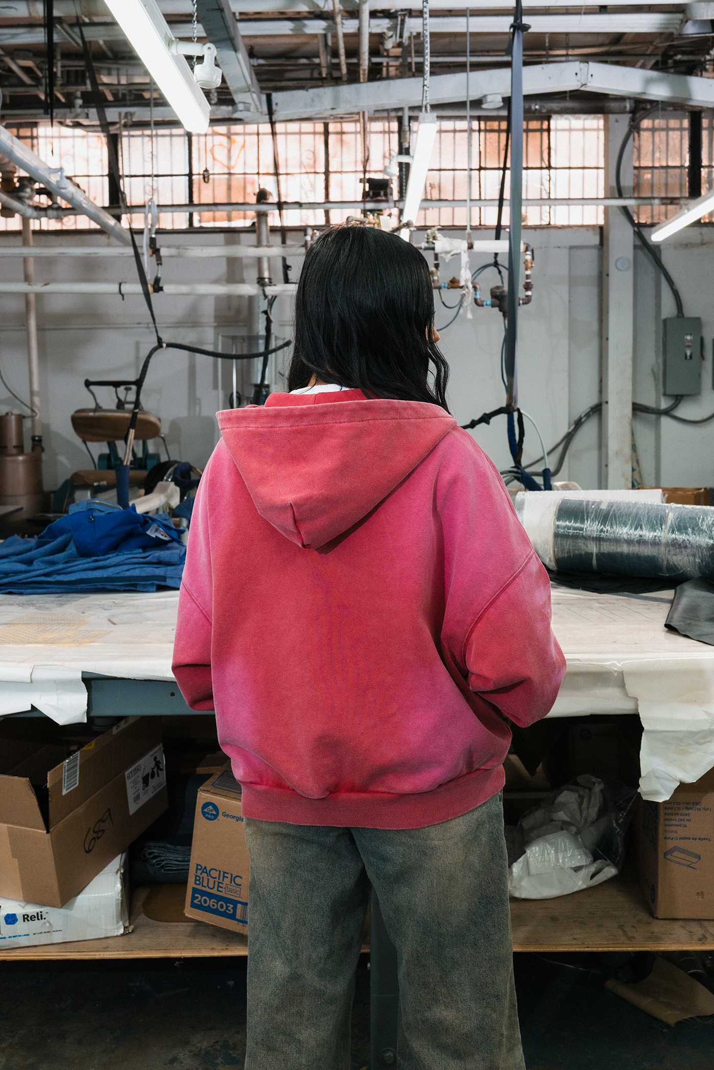 SCRATCH BRIGHT RED ZIP UP BOXY FIT HOODIE